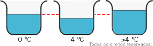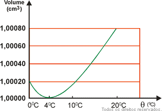 Em geral, um líquido, quando aquecido, sempre dilata, aumentando de volume: No entanto, a água constitui uma exceção a essa regra, pois ao ser aquecida de 0°C a 4°C tem seu volume diminuído, ao invés de aumentado. Apenas para temperaturas acima de 4°C a água dilata-se normalmente ao ser aquecida.