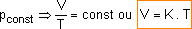 T const ⇒ p . V = const ou