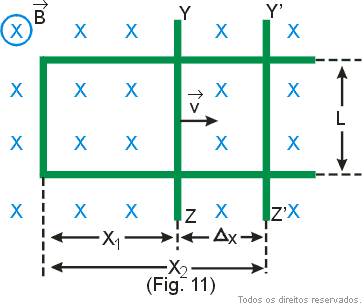 Na Fig. 11 representamos um condutor dobrado em forma em força de U sobre o qual se apoia um condutor Y X que se move com velocidade