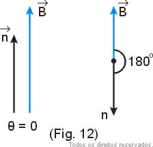 Na Fig. 8 representamos uma espira estre os polos de um imã. Se girarmos a espira, iremos provocar a variação do ângulo θ (Fig. 9) entre o campo