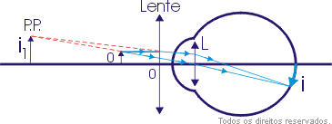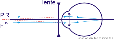 Conclui-se que o foco F” da lente corretora coincide com o ponto remoto P.R., ou seja, a distância focal da lente é igual à abscissa do ponto remoto, que é virtual.