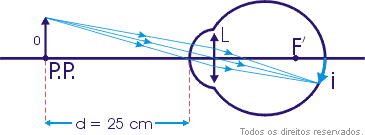 Devido ao mecanismo de acomodação visual, uma pessoa, com visão normal, pode enxergar com distinção, objetos situados desde a 25 cm em média, do cristalino até o infinito.