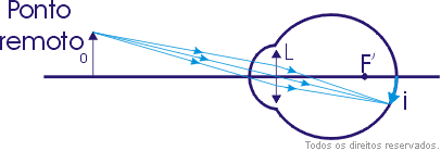Como consequência disso, o ponto remoto para o míope está a uma distância finita do olho, como na figura a seguir.