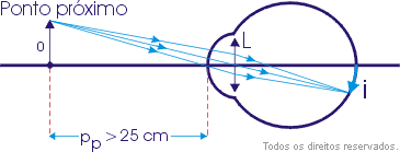 Como consequência, o ponto próximo do hipermetrope está mais afastado do que estaria no caso de um olho normal.